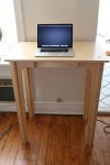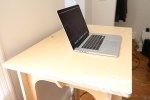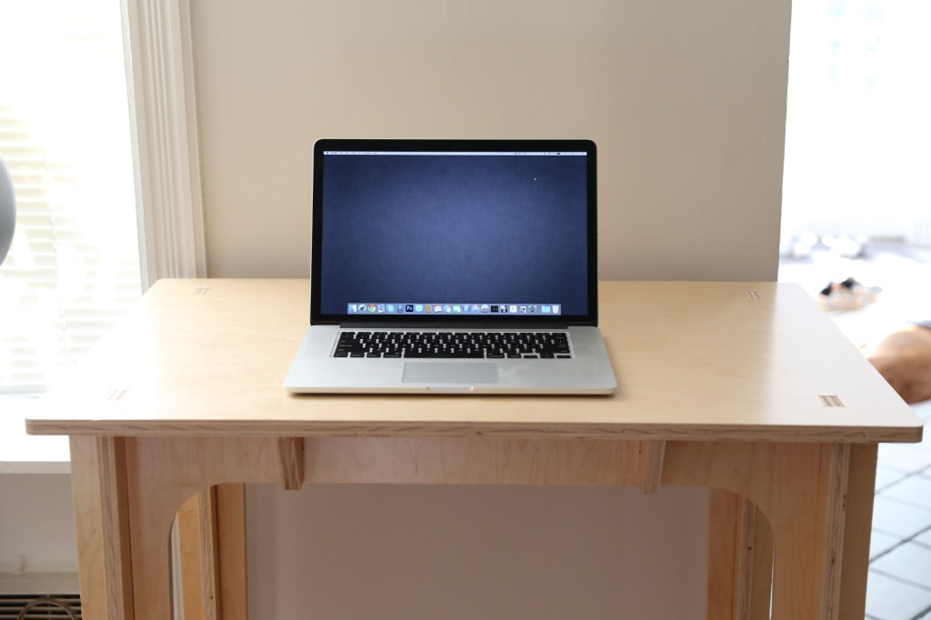 Yamnitsky sent over one of the first production prototypes off of the line so that I could check it out in action, and it’s impressive out of the box. Assembly, even on my own, took about 5 minutes, and most of that time was spent removing bubble wrap from the individual pieces. There’s no hardware, nails or screws to deal with, and yet the desk feels solid and doesn’t exhibit any noticeable shake when you’re typing away on your laptop while standing. Plus it breaks apart in less than a minute for easy transportation to another room or a new location.