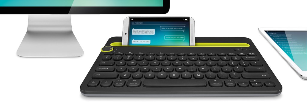 Keyboards, schmeeboards, amirite? But wait! Take a look at the Logitech K480, a unique Bluetooth keyboard that can connect to three devices simultaneously and allows you to switch between them using a little dial. The devices sit in a trench over the keyboard and you can swap from, say, a computer to a phone to a tablet.