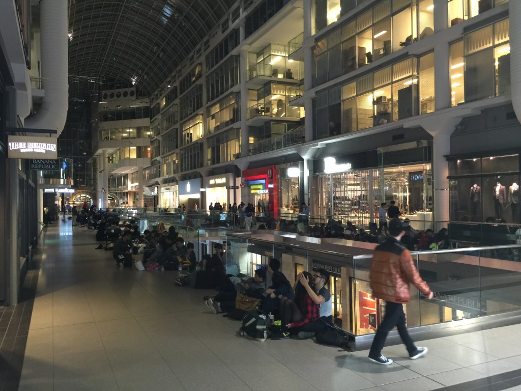 Apple’s main store in Toronto at the Eaton Centre had already amassed a long line that snaked around the entire upper floor of the mall where it’s located when I dropped by last night, with people spanning an area of about two city blocks indoors wrapping around and doubling back in a massive throng of people.