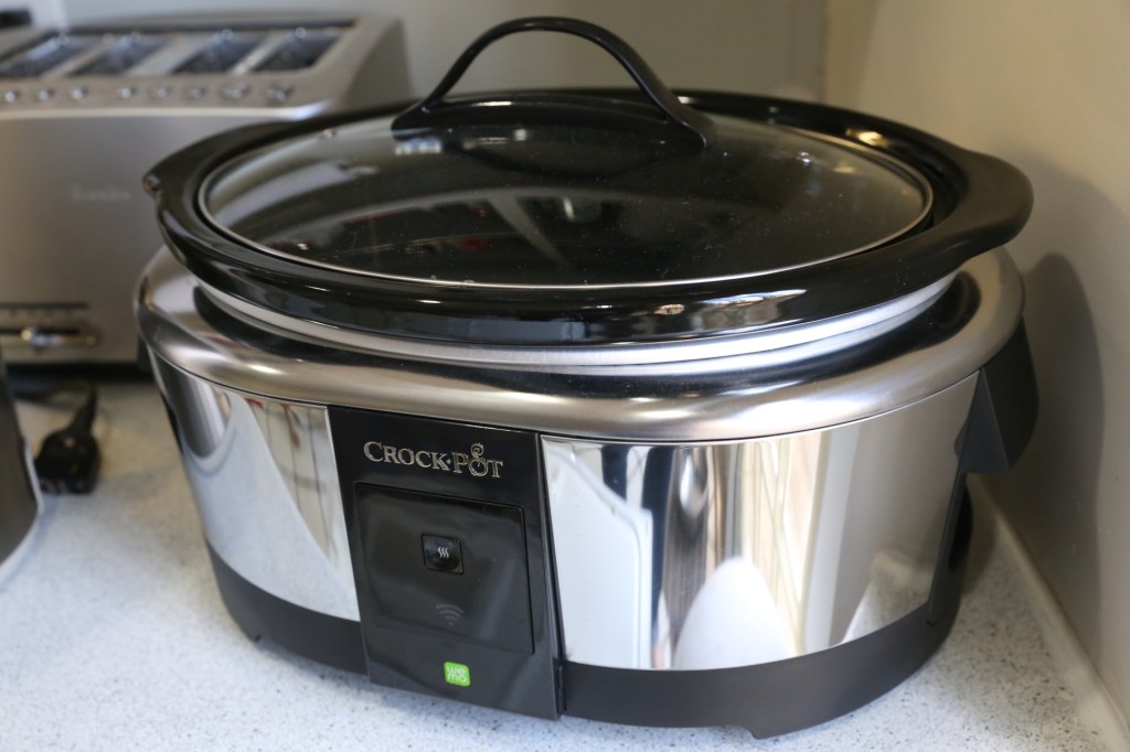 The WeMo line is Belkin’s smart home brand, and the Crock-Pot can be controlled from the same app that lets you monitor and interact with your WeMo lights, switches and outlets. But the Crock-Pot doesn’t offer much in the way of interactivity with the rest of the WeMo family; it’s essentially a remote-controlled slow cooker, with an on/off switch you can carry in your pocket.