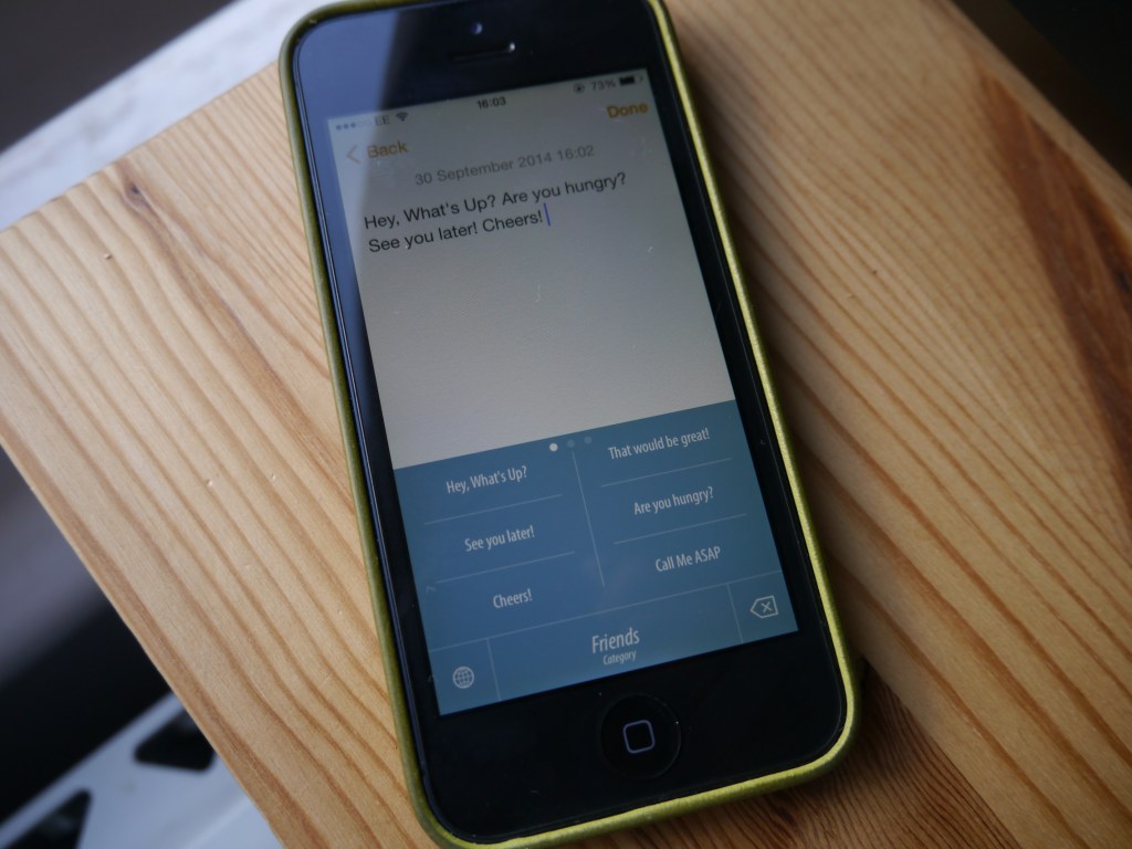 Phrases sitting within Phraseboard’s keyboard wrapper are entirely customizable, although the app starts with a few pre-set offerings to get you going — like a ‘Friends’ section with oft typed stalwarts like ‘Hey, What’s Up?’, ‘See you later!’ and ‘LOL’.
