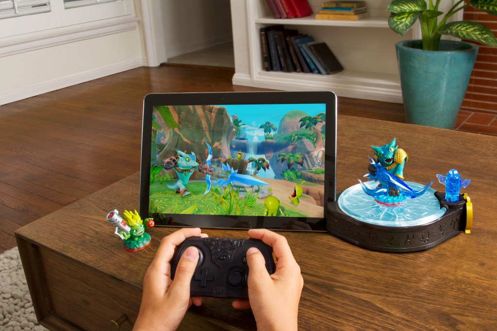 That’s not the only trick Skylanders Trap Team has up its sleeve, however – the game is being billed as the first to launch simultaneous, completely identical games on both tablets and dedicated gaming consoles. Trap Team is available as a starter pack either for the standard Wii, PlayStation and Xbox consoles you know and love, or for the iPad 3 and higher, along with select Android and Kindle Fire tablets. The tablet version works across devices from various manufacturers, and comes with a Portal and dedicated controller that both use Bluetooth LE to connect, and are battery-powered so you can use them anywhere.
