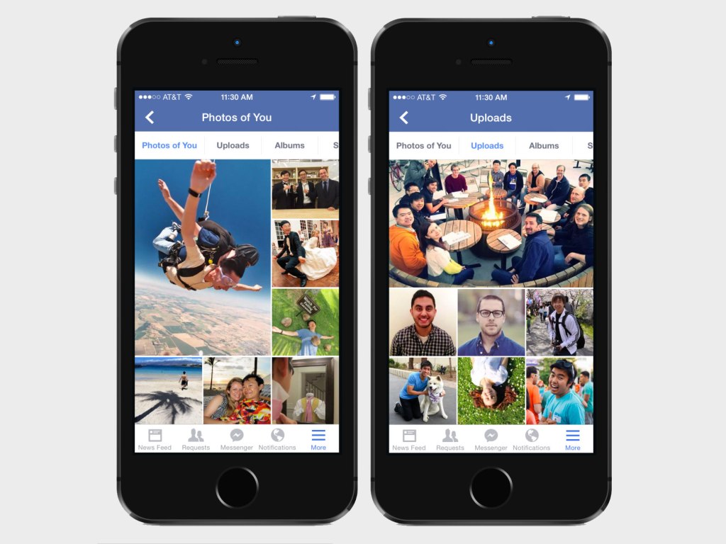 Not every photo is worth exactly 1,000 words. That sweet pic of you skydiving is a lot more interesting than your lunch. So today Facebook profiles on iOS and Android apps are getting a new collage design for photos that enlarges your most-Liked pics, Facebook tells me. There’s also a new “Uploads” tab that shows all the photos you posted in one place so your friends don’t have to dig through pics scattered in different albums like before. And if they do want to explore your albums, they’ll see big cover photos for each rather than just a list of album names and tiny thumbnails.