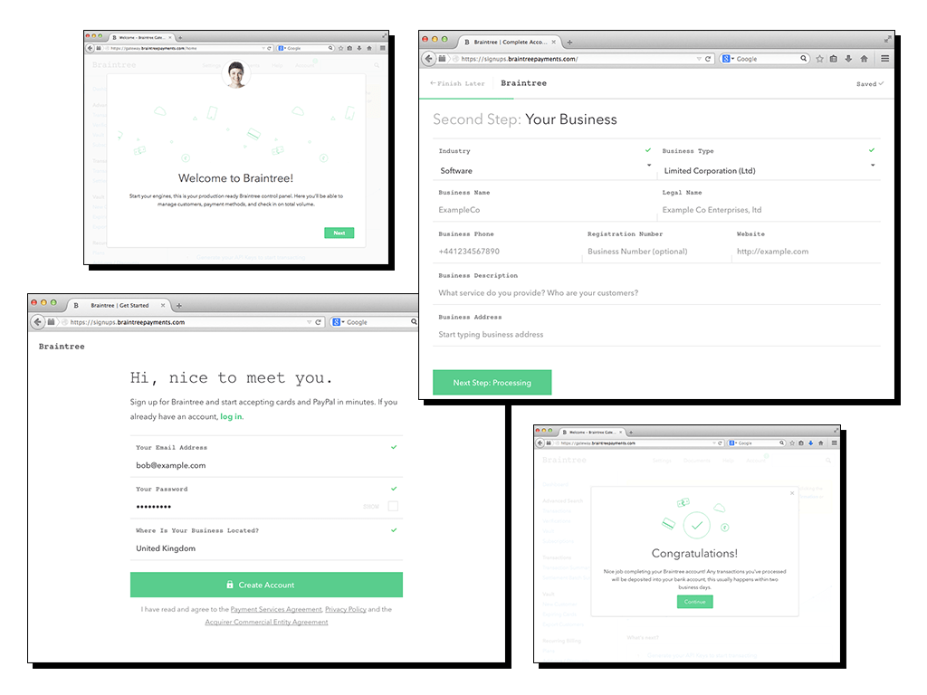 While PayPal continues to work out its frenemy relationship with Apple, and figure out how it will chart its life as a company separate from its owner eBay, its mobile and developer-friendly payments subsidiary Braintree, acquired in 2013 for $800 million, is launching a new service that will let merchants sign up to the platform with only an email address, URL and short company description. It’s also extending its offer to Europe of offering the first $50,000 of transactions on the platform (in a local currency equivalent) free of any commission fees.