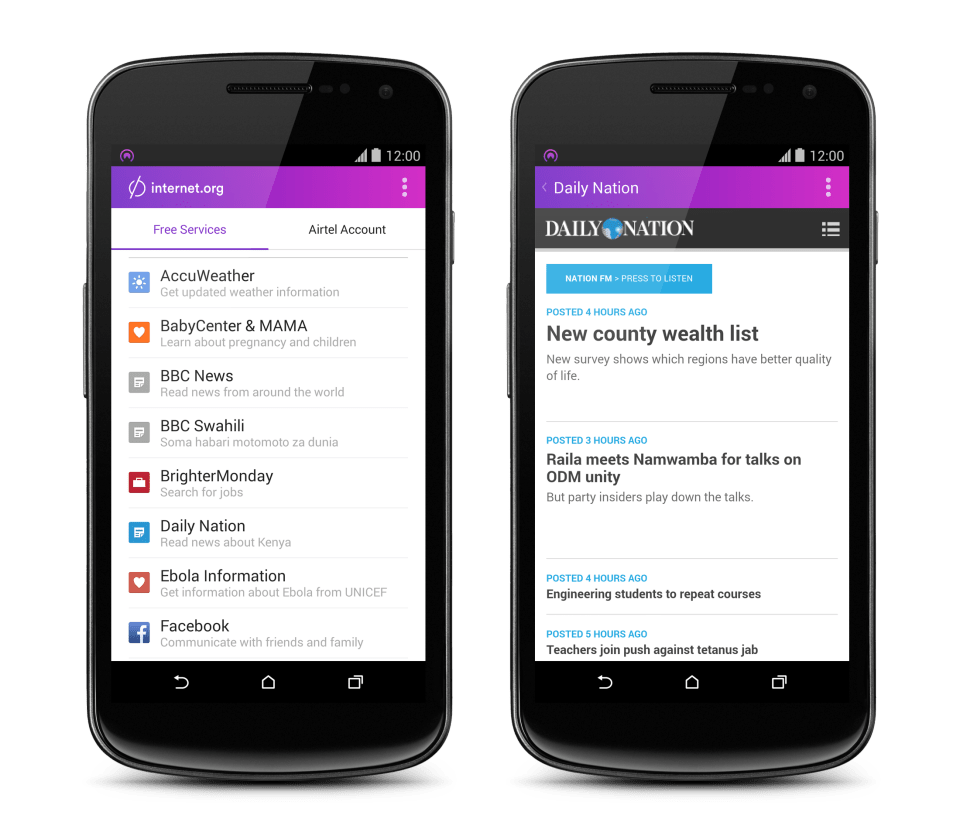In the case of Kenya, Airtel customers will able to access the following news, information and communication services via the Internet.org app: