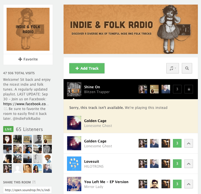 In a blog post today, the company said the rooms will be closing on December 31, to give “the people who use the Soundrop product (we never think of them as simply “users”)…time to find a new place that helps them discover and enjoy music together with their friends, and allows them to build new homes for communities they created.” Soundrop tells me that it had 120,000 monthly uniques, but a very engaged set of people among them, generating hundreds of millions of music plays.