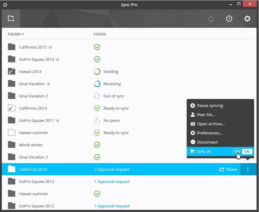 Sticking to a freemium model, BitTorrent will add more features to both to the free and paid tiers of Sync 2.0. Free users will get an easier way to share and sync folders, a better UI, new tablet apps for Android and iOS (right now it’s the same apps across phones and tablets). Throughout all of this, there are no restrictions on folder sizes for free users (a contrast to cloud-based services that cap free usage as a lever to encourage users to pay).