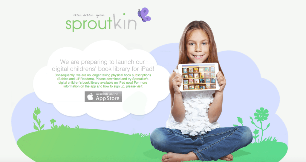 Parents weren’t interested in a “Netflix for Children’s Books” service, apparently. A company called Sproutkin, which launched in spring of 2013 offering shipments of just under a dozen books which parents paid for on a monthly basis but could return at any time for a new batch. The idea was that, in their younger years, kids quickly outgrew their books, and this would be a more affordable option than running out to the bookstore or buying new books from Amazon all the time.