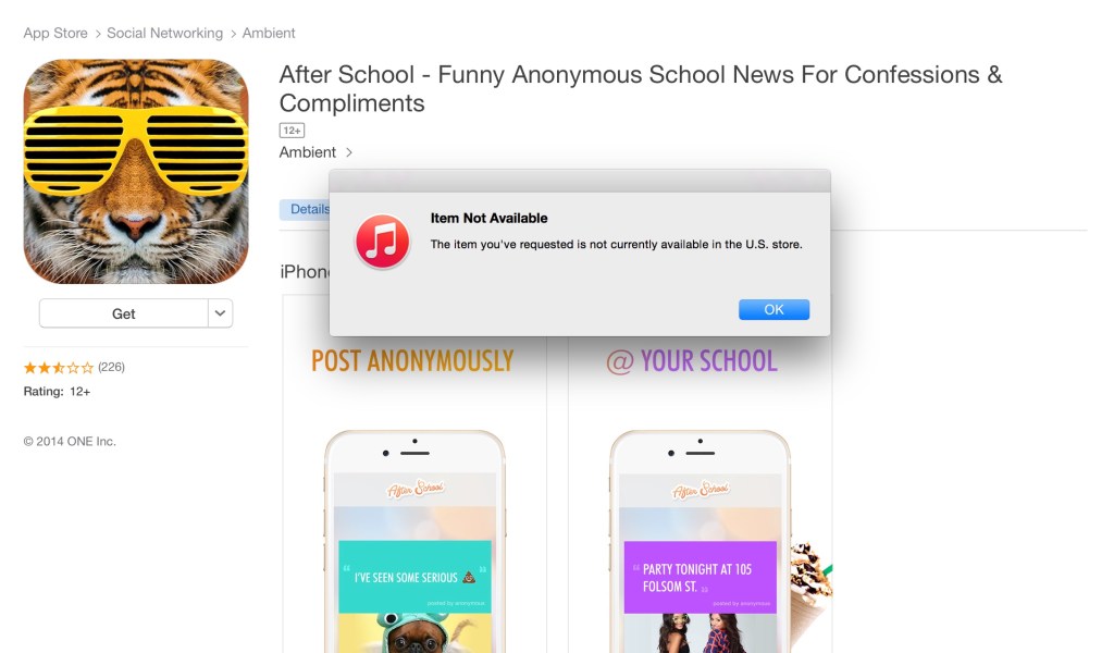 Another haven for cyberbullying is gone. The app After School we reported on yesterday is no longer available in the Apple App Store. It’s unclear at this time if it was pulled by Apple or taken down by the publisher.