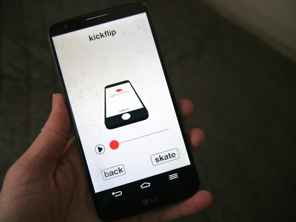 Being as it’s reliant on sensitive gyroscope hardware, Gyro Skate only works with a subset of Android devices that contain actual physical gyro hardware, so older phones may not play nice. Those with incompatible hardware will find the app can’t register tricks properly so successful flips will go unjudged. But you can still stand there flipping your phone into the unquantified analogue void, as it were.