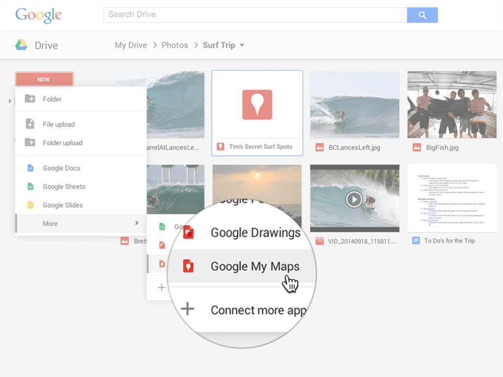 Google’s My Maps tool for building custom drives, trips and routes on its Maps product is now integrated into Google Drive, which means you can build custom maps just as easily as you can new documents, slideshows and spreadsheets.