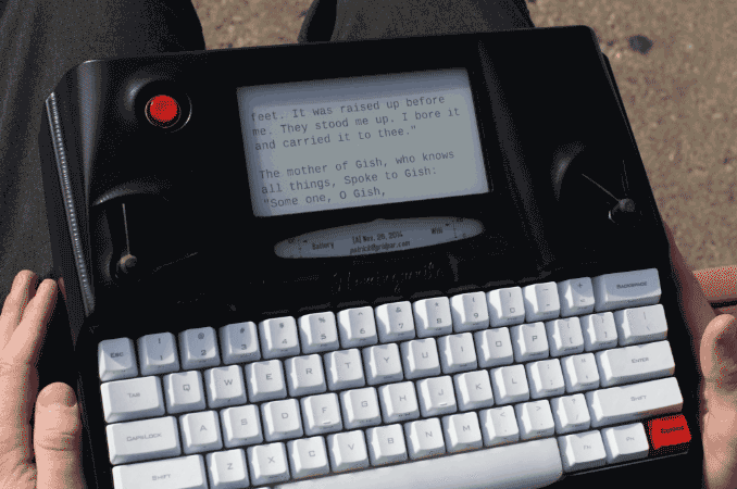 Hemingwrite, which debuts on Kickstarter today, pairs a mechanical keyboard with an e-ink display for on-the-go writing prowess. It does away with the complexity of other solutions, including notebooks and iPad/keyboard combos, and it helps shut out the constant harangue of social media, including the distracting lure of Twitter’s inane cackling and the former flame pabulum of Facebook’s worthless background chatter.