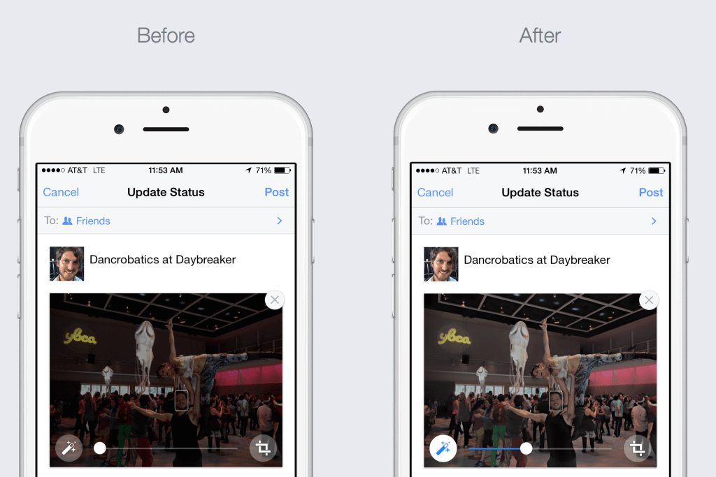 We’re not ace photographers, but we all take photos. Most could use a little help with light and shadow. So rather than making you manually filter them, Facebook tells me it will now auto-enhance newly uploaded photos starting today on iOS and soon on Android. You’ll be able to adjust a slider to control just how enhanced you want the light, shadow, and clarity, or revert back to your original shot.