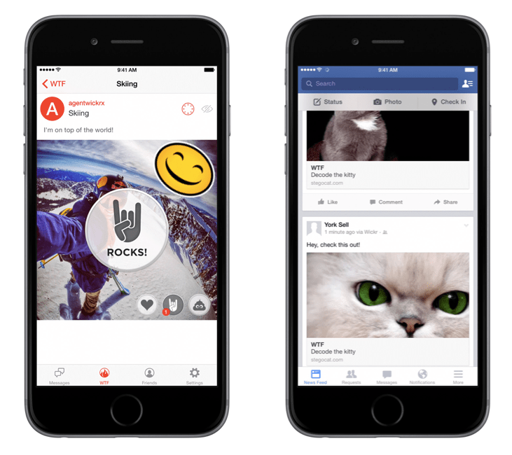 The service works like this: on Wickr, you can share your photos with up to 151 friends by tapping the WTF tab, creating a photo, customizing it, and then choosing where to place the picture (in a specific feed and/or on Facebook).