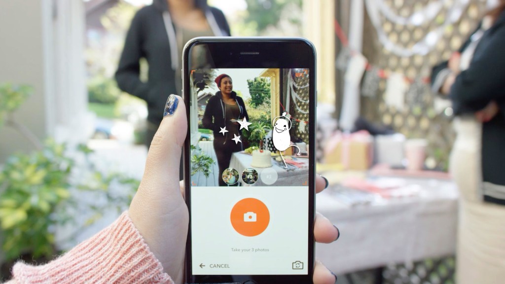 Simply put, the iOS app lets you take three photos in succession, overlay text and graphics, and turn the result into a short ‘movie’ sequence. Essentially, it’s a way of injecting motion into photos taken on your phone. Or, perhaps, another way to think of it is the ‘Ken Burns effect’ — zooming and panning — that we’ve all become accustomed to in apps like Apple’s iPhoto, but taken up a couple of notches.