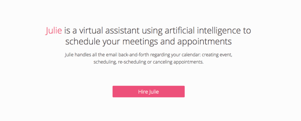 To that end, Julie Desk isn’t wholly reliant on AI, but, so as to negate any false positives (which could have a devastating effect on a person’s schedule) also employs humans to oversee the work of Julie.