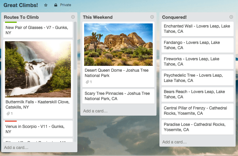 Pryor says that he sees a wide variety of projects on Trello. While some folks use it for corporate project management, other Trello projects include wedding planning, Christmas gift lists for children, or family vacations.