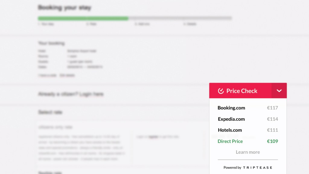 Why is this significant? Well, in addition to Triptease’s broader mission to bring greater transparency to hotel pricing — I’m told that third-party hotel booking sites often employ shady tactics, such as fluctuating and disappearing rates — it also enables hotels to better own the customer relationship and improve it.