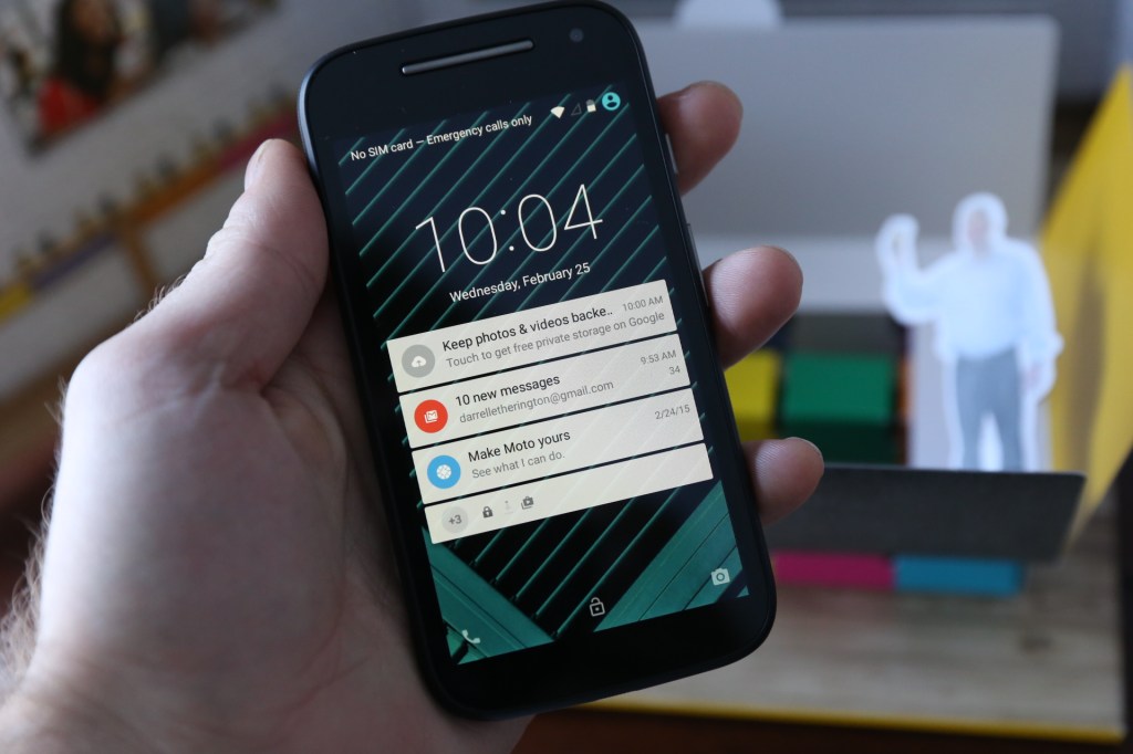 We’ll have further impressions of the device itself later today. For now, know that the phone boasts Android 5.0 Lollipop, a 4.5-inch 540×960 display, a Qualcomm Snapdragon quad-core processor, 8GB of on-board storage with removable micro SD card support, a 5MP rear camera with AF and a front VGA camera, plus additional sensors to help trigger Motorola’s Quick Capture and active display notifications. It already seems like a big upgrade on last year’s model.