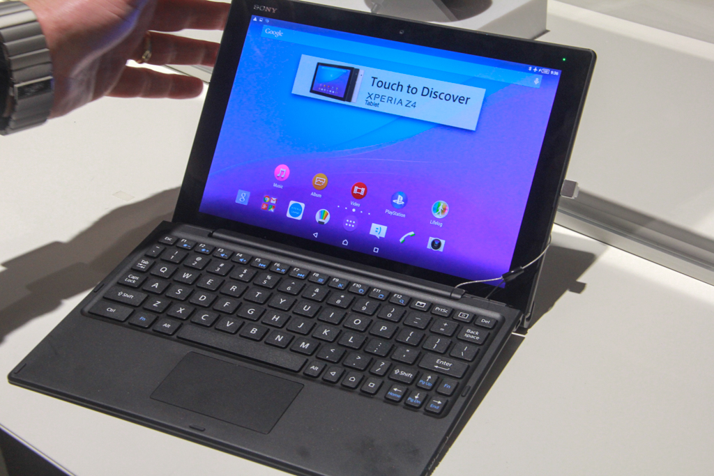 Meanwhile the Xperia Z4 tablet, which has a Snapdragon 810 octa-core 64-bit chip, harks back to Sony’s PC making days — thanks to an add-on keyboard accessory. A Sony rep told TechCrunch that former Vaio staff worked on the optional Bluetooth keyboard accessory for the tablet, called the SCR32 perfect fit cover.