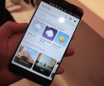 The first view you see after you unlock the phone (with a side swipe) is a Scope card showing the date, today’s weather and any upcoming events in your calendar. Swiping across brings in additional themed Scopes, such as one called Nearby which serves up location specific content such as nearby restaurants, pulled from Time Out (one of the handful of third party app makers supporting the platform at launch).