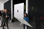 In person, the computer’s technical achievements are even more stunning than they were on stage. The notebook weighs only around 2 lbs, which is amazingly only about half a pound heavier than the original iPad. Holding it in the hand tricks your mind into thinking it’s even lighter, though, thanks to that larger display and the fact that you remember it’s actually a notebook.