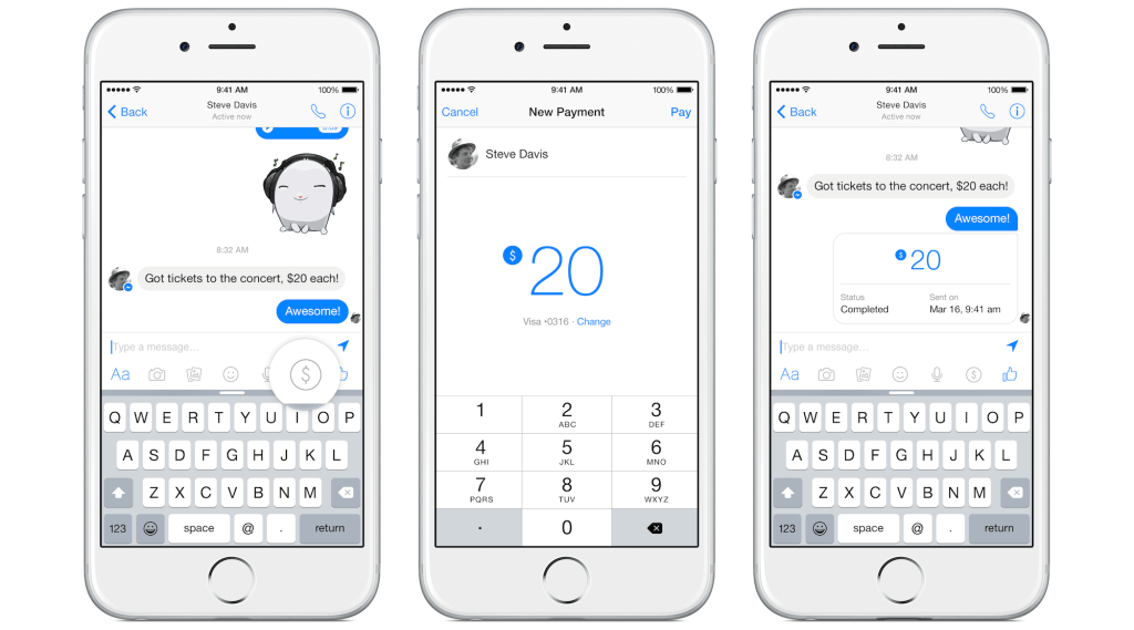 When you chat with friends about settling debts or splitting the bill, Facebook doesn’t want you to have to open another app like PayPal or Venmo to send them money. So today it unveiled a new payments feature for Facebook Messenger that lets you connect your Visa or Mastercard debit card and tap a “$” button to send friends money on iOS, Android, and desktop with zero fees. Facebook Messenger payments will roll out first in the U.S. over the coming months.