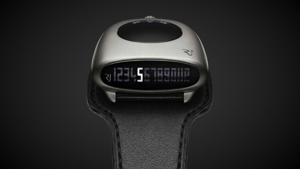 Created by Manuel Emch, CEO of Romain Jerome, and designer Alain Silberstein with some help from watchmaker Jean-Marc Wiederrecht, the watch has a hand-made mechanical movement inside a light titanium case. For the watch nerds out there this piece has a lateral movement, linear time display, jump hours, and a retrograde hand – all features that watch fans call complications. This means that the front display moves across the hours one by one by “jumping” from number to number and returns to the beginning after noon or midnight. There is a small luminous tube on the hour hand so its visible at night.
