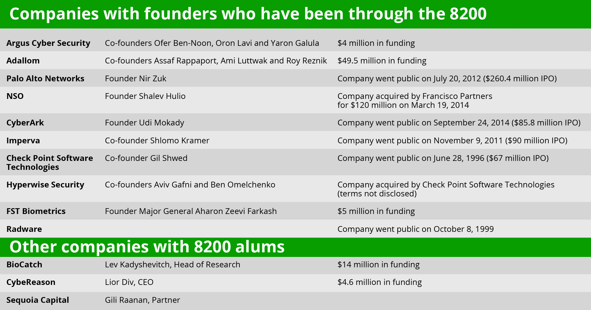 The result is that 8200 alumni have developed critical startup skills and experience even before they start their first company. That’s why it’s not a surprise that technology companies, such as CheckPoint, Imperva, Nice, Gilat, Waze, Trusteer, and Wix all have their roots in this IDF unit.
