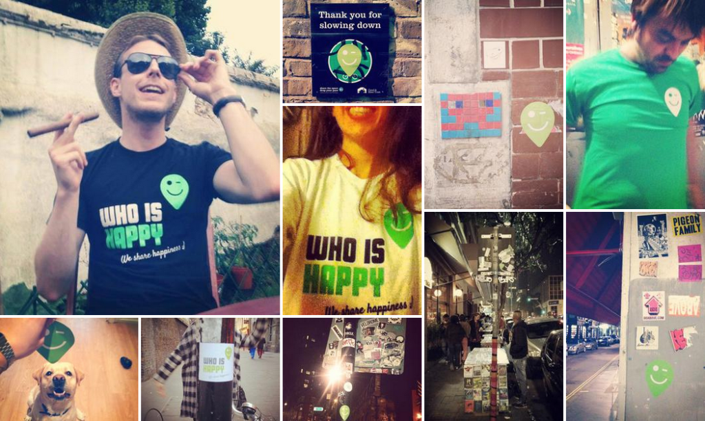 The Who Is Happy app lets users tap a button to tag their buzz on a map — suitably hazily, with checkins indicated on the map by a puff of green smoke with a radius of 1km for four hours after the checkin button is pushed, making it tricky to pinpoint the exact location and moment a spliff/blunt/joint/doobie/Camberwell Carrot/pétard was sparked. Individual users are never tagged.