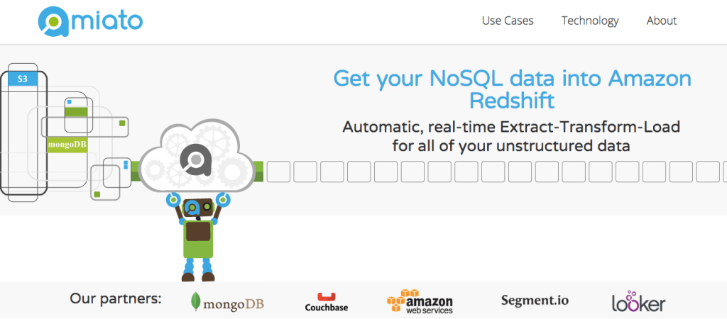 Since then, it appears to have evolved further. As it notes on its own homepage, “Amiato’s Schema-lift™ technology extracts all the data from your NoSQL data stores, automatically transforms it, and loads it continuously into Redshift, Amazon’s petabyte-scale database. You can then immediately write SQL, connect Tableau or Excel, or use BI discovery tools like Looker.”