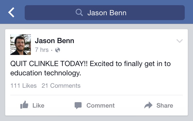 Today, seven employees quit Clinkle after becoming fed up with Duplan, including some of longest standing and most core employees left. More are expected to leave soon. Other high-profile departures listed on LinkedIn from the last six months include Clinkle’s Director Of Finance, Head Of Analytics, Director Of Business Operations, Engineering Director and Compliance Officer.