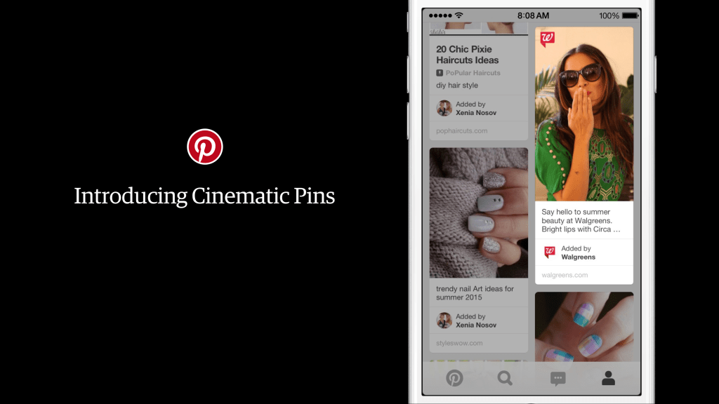 The company also said it was bringing out new forms of specific audience targeting, where marketers can target Promoted Pins based on interests or stages of like — such as for traveling or for designing a home. Like many of its previous advertising products, Pinterest is launching its Cinematic Pins and its new audience targeting with a set of partners that include brands like Gap and Wendy’s.