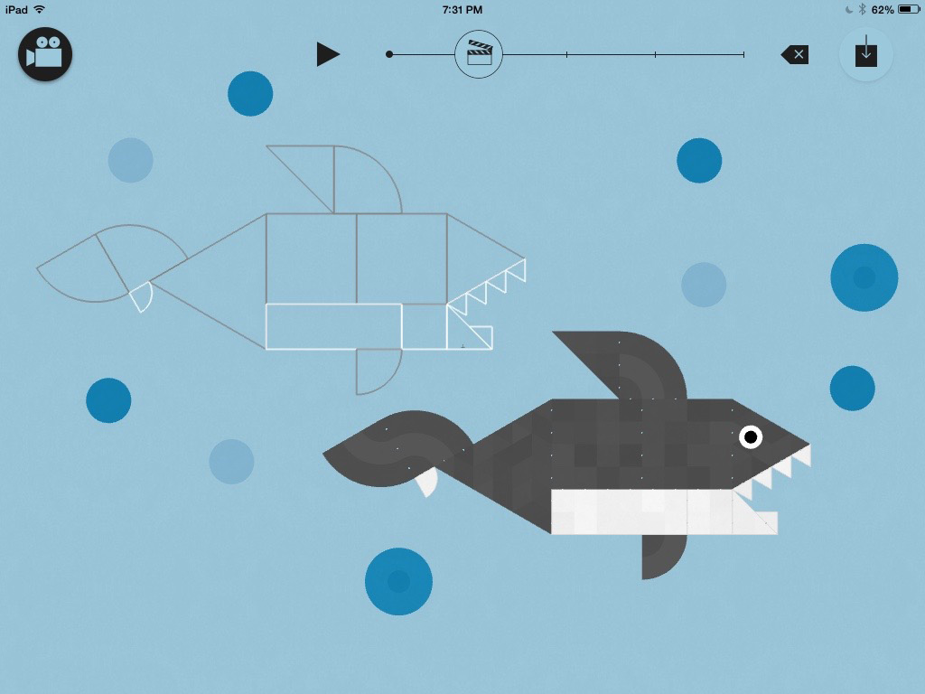 Finally, they can create animations frame-by-frame. By providing the simplest of tools, ShapeKit allows imagination and creativity to flourish. It’s amazing how a few circles, squares, and triangles can be assembled into a limitless range of scenes, creatures and machines.