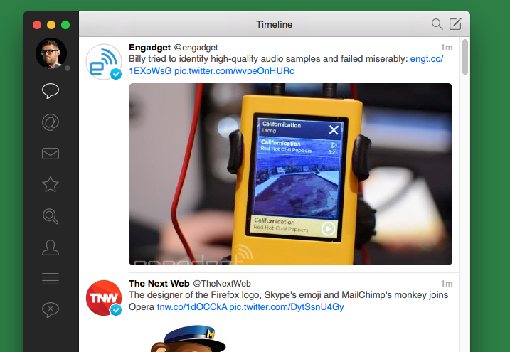 New to the app are a flattened look, along with a simpler color palette that includes the dark sidebar and lighter main column(s). Account profile pictures are shown in circles now, in keeping with the look on Tweetbot’s iOS client; the account switcher is easy to navigate, and animations that transition between sidebar menus are subtle, fast and awesome. The new profile view is rich in both information and media, and overall the look is an homage to a clean, spare presentation of the content of tweets themselves that nevertheless makes it incredibly easy to distinguish one tweet from another, and to drill down on any particular post for more information.
