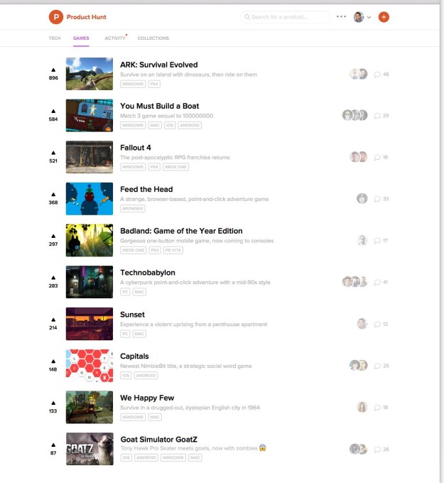 But while music, fashion, movies and other categories had been tossed about as possible additions to Product Hunt in the future, games were a more natural next step for the platform to break into, according to founder Ryan Hoover. He believes there’s a lot of cross-over in tech and gaming demographics, and the two are an obvious fit.
