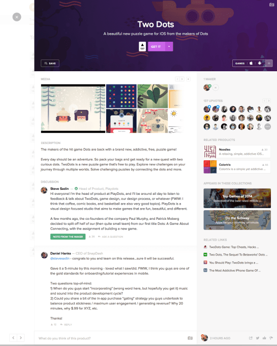 The category is also a comfortable one for Hoover. He worked at PlayHaven and InstantAction before setting off on his own to build Product Hunt, so he’s been involved in the gaming world for a while.