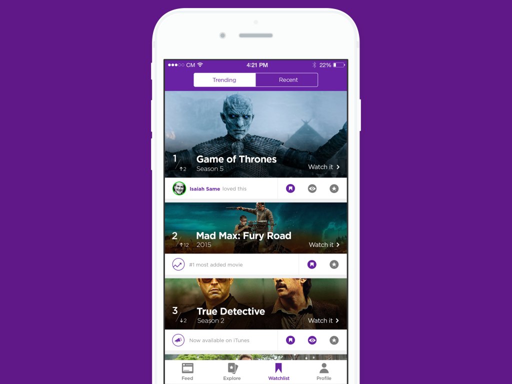 In the future, the company plans to expand this feature to include a Twitter-like follower/following model, so you can connect with various tastemakers – like movie critics – outside your own social graph.