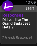 Currently, Legit focuses on content that can be found on Netflix, Amazon, Hulu, YouTube or iTunes, as well as in theaters. At first launch, the app asks you about favorite genres, movies, and the platforms you use, in order to customize the experience. You can then dive into Legit to find things to add to your watchlist, track friends’ ratings, and more. You can even quickly poll friends about their likes on the app or on its Apple Watch counterpart.