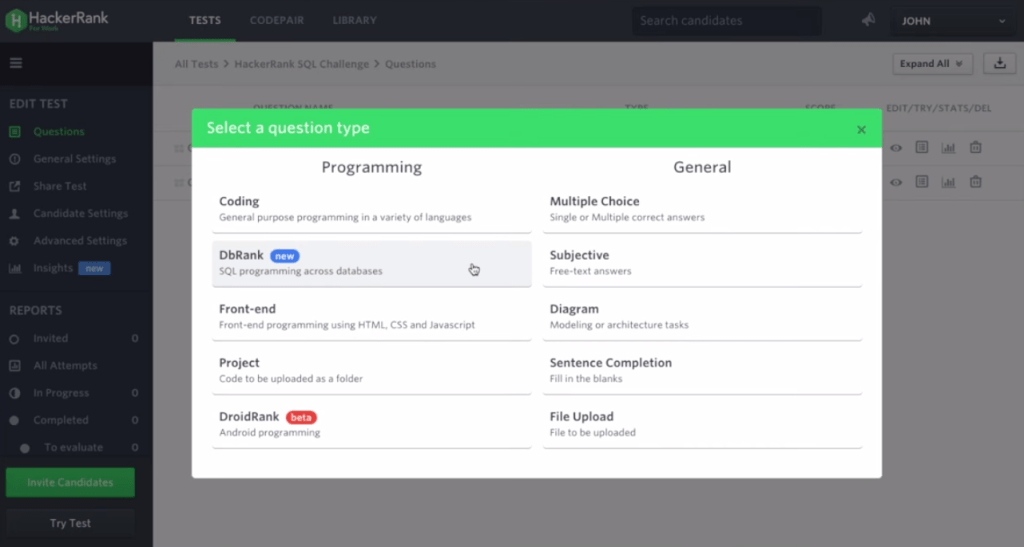 The company also today launched DbRank, its new screening tool for hiring database programmers, business analysts and data scientists. The service is meant to help employers test the database skills of potential hires. It focuses on skills in handling Oracle, IBM DB2, MySQL and MSSQL. Candidates will run real-time database queries during the assessment process and the system will automatically score their performance. Support for NoSQL databases will likely follow soon.