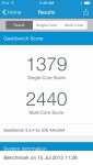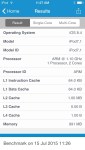 Update: We’ve got some of the new iPods here to play with and we ran an initial benchmark on the iPod touch. The processor appears to be running at 1.10GHz per core, vs the iPhone 6’s A8 processor, which clocks in at 1.39GHz. The Geekbench scores clock in at 1379 and 2440 right out of the box with as much idle state as I could manage. This means that the iPod touch A8 processor is under-clocked slightly from the iPhone 6, which is not surprising given the battery constraints I mentioned above. It also appears to have 1GB of RAM.