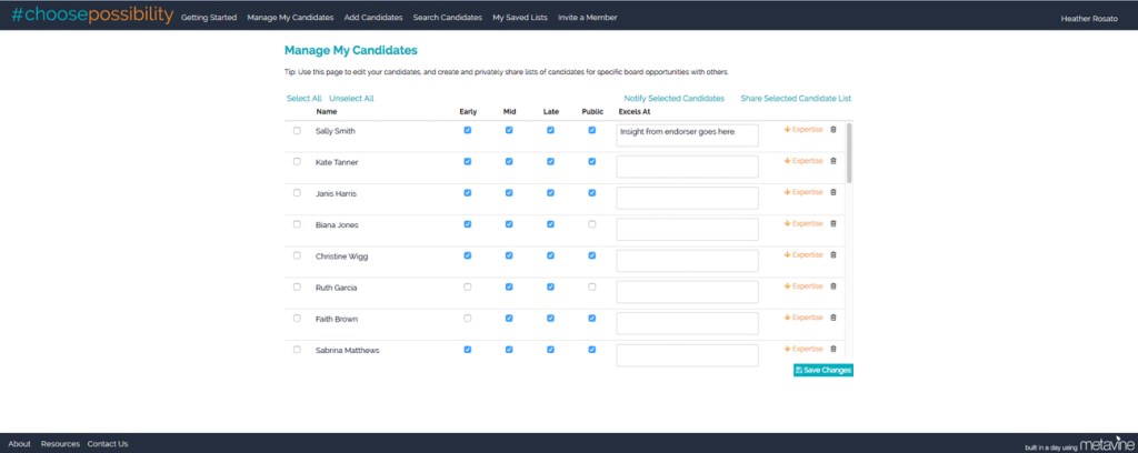 Cassidy also asked each business leader to provide specifics, including what stage of the company might make the most sense for their candidates (Series B through Series F), what each candidate’s functional and industry expertise is, and what it is that each person excels at particularly.