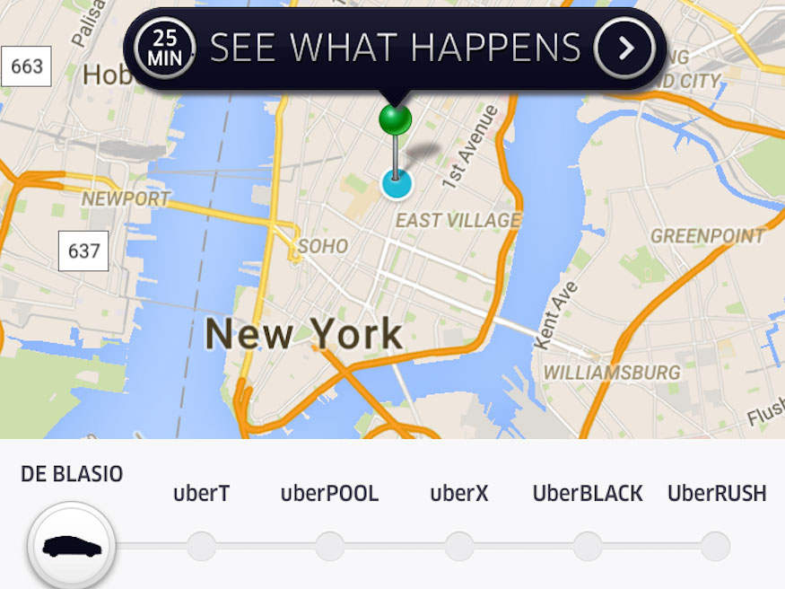 The company just added a “de Blasio’s Uber” feature, now available for over 2 million NYC users that will either always show no cars available or wait times of 25 minutes.