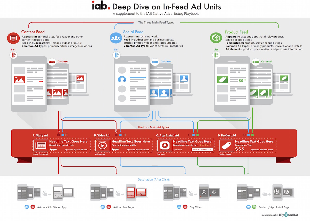 The Interactive Advertising Bureau just released its “deep dive” into the world of in-feed ads — namely, the ads that show up in the middle of the stream as you scroll through your favorite news site or social network.