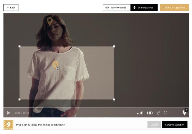 For example, a company can create touchable video by dropping pins on each article of clothing shown in a video of a photo shoot. Users can then touch these pinned items while the video plays, and when it’s finished are provided information about each item as well as a link to purchase it.