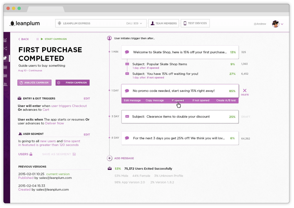 Together with Leanplum’s analytics and ability to test UI changes on the fly, the company now offers marketers a fully featured solution for engaging with users after they have installed an app. While the company previously offered most of these services, it was missing a comprehensive dashboard like the Lifecycle Engine that made it easy for non-technical users to use the service to its fullest extent.