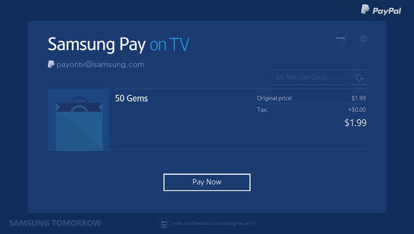 Samsung says it partnered with PayPal to create a pay-by-PIN process to let its smart TV users register payment card/PayPal details so they can buy stuff on their TV with a few button pushes in the future. So this is also about Samsung opening up its Tizen OS-based smart TVs as a platform for e-commerce.