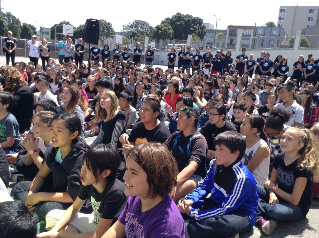“It’s great to write a check,” Benioff said today in front of a crowd of sixth graders at Presidio Middle School. “But money alone doesn’t help schools. What helps schools is all of us embracing our schools, our school board and our great superintendent.”