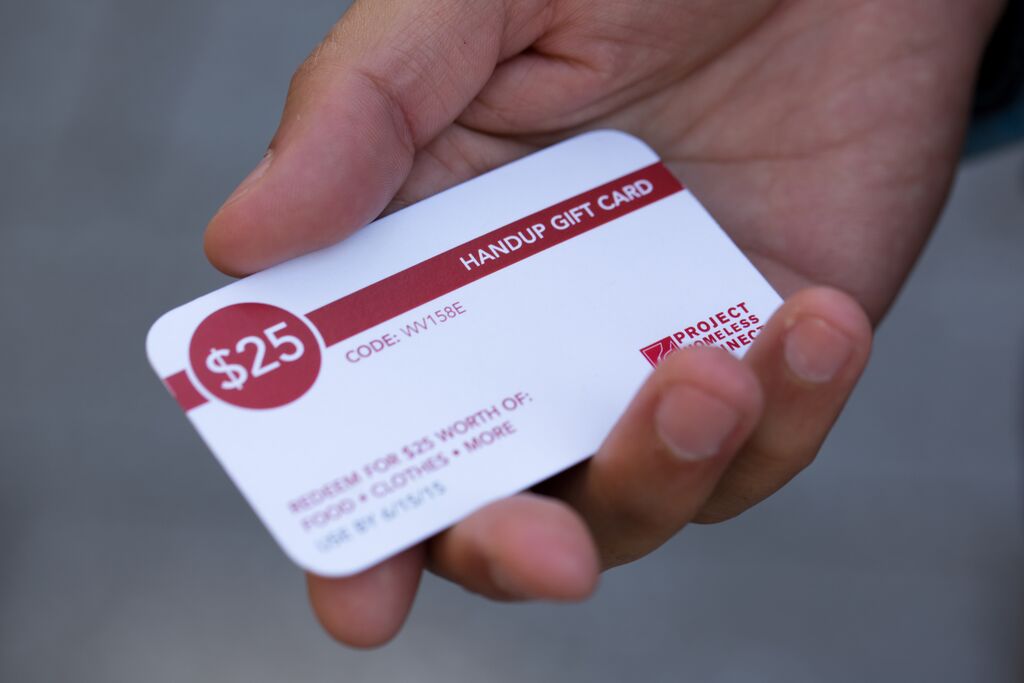 But one of the most commonly requested features from donors was gift cards that people could give out directly on the street to people they pass by every day. Broome and the team began testing $25 gift cards out that homeless people could redeem at Project Homeless Connect for food or other goods.