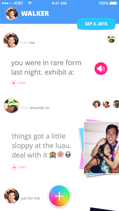 Users still have the option to share with a friend, which will result in their content appearing in the friend’s own timeline. The friend can then either view the message and have it disappear, or save it as a permenant entry in their own journal.